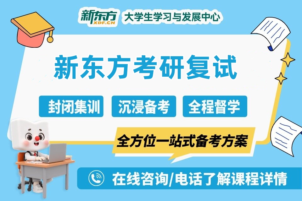 新东方考研复试辅导班,开设考研复试英语口语走读面授班、考研复试英语口语住宿集训营、考研复试英语口语1V1、考研专业课复试1V1,通过讲、练、测、评四维一体科学、系统的辅导模式,还原考研复试现场各重要环节,在关键点上为学生指点迷津。课程重视代入式体验,通过试题及教练式一带一练课程服务,加强考生复试英语口语交流能力及综合面试应变反应能力。